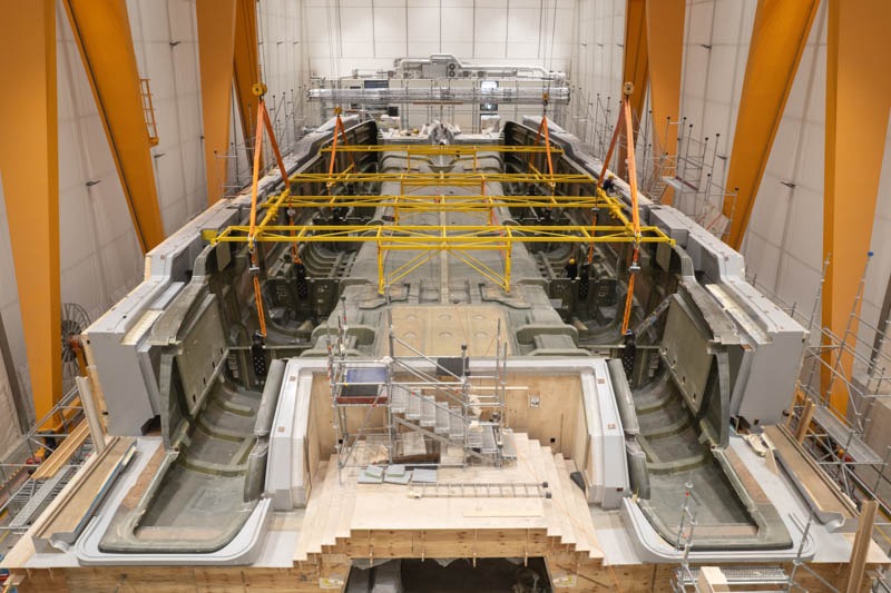 The hull was created using a single-shot infusion technique, allowing for a lighter and stronger structure while minimizing volatile organic compound emissions. By employing a modular construction approach, various yacht components can be developed simultaneously, enhancing project management efficiency and maintaining precision.