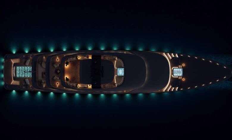 Although the hull measures 65m, it will offer the volumes and amenities more usually associated with an 80m yacht. These include a prominent owner’s suite with a private lounge offering panoramic ocean views. The owner’s stateroom itself benefits from floor-to-ceiling glass for a profound connection to the surrounding seascape. There are four further guest cabins and a large main deck lounge, which provides a stylish and inviting space for relaxation and social gatherings.