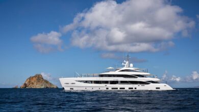 Designed to be enjoyed both underway and at anchor, the 577 Coupé features a transformable stern beach club, a fully integrated garage for a tender and water toys, and a seamlessly integrated awning system that provides flexible shade throughout the day.