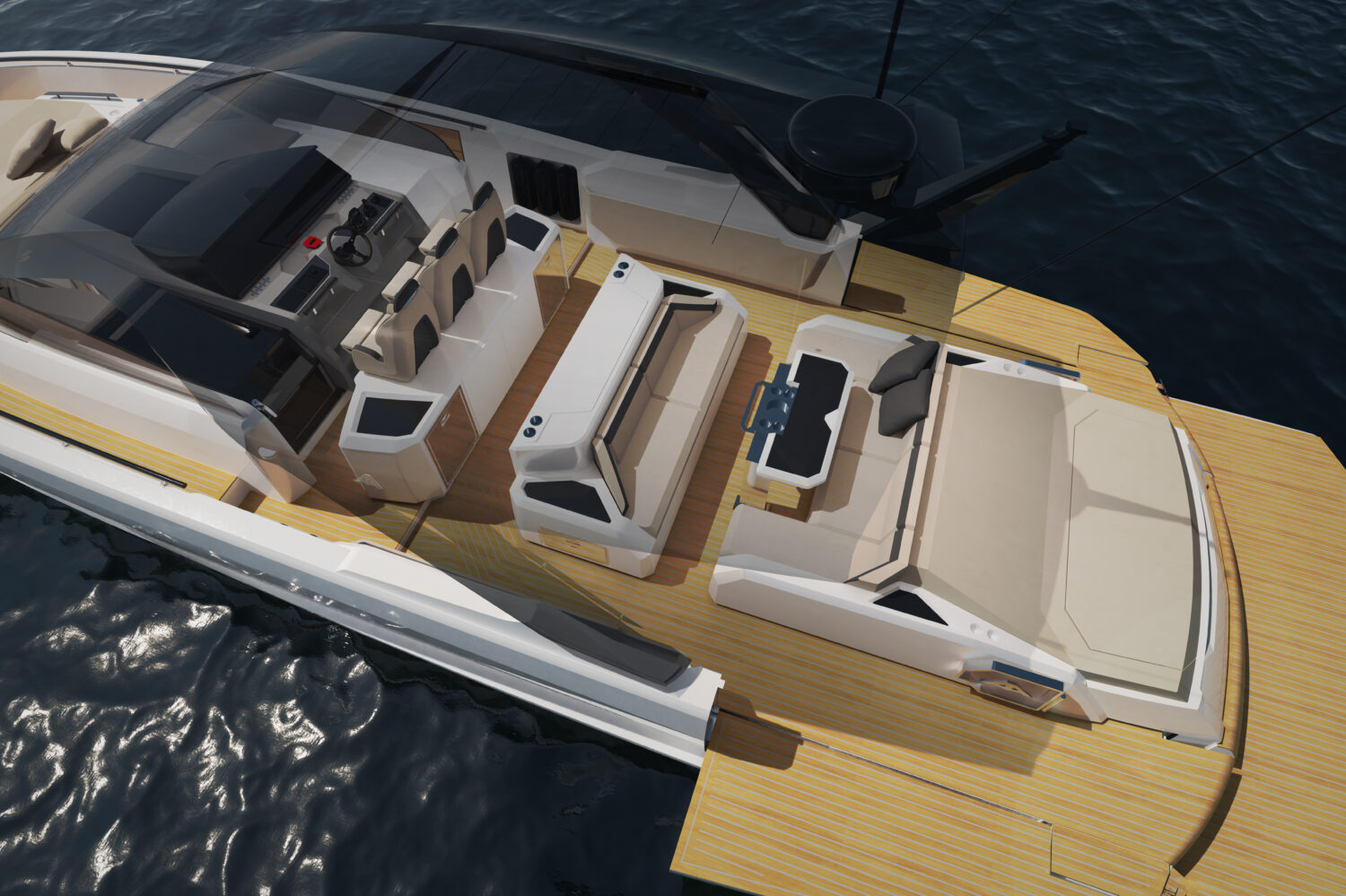 With an overall length of 15.90 meters, a beam of 4.61 meters and a shallow draft of just 1.35 meters, the 577 Coupé offers outstanding versatility, combining dynamic navigation with easy access to shallow waters.
