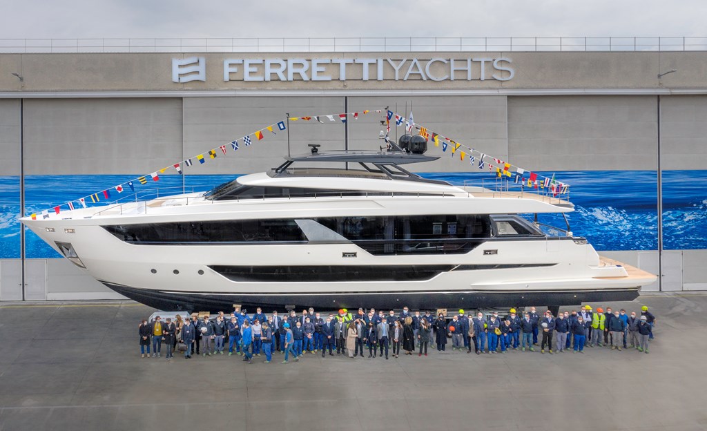 The new flagship hits the water in Cattolica, the first unit is for a French owner Cattolica, March 12th, 2021 – Space for onboard comfort and wellbeing; space for timeless design and ‘Made in Italy’ craftsmanship. The first Ferretti Yachts 1000, the shipyard’s first 100% wide-body vessel, has been launched in Cattolica for a French owner.