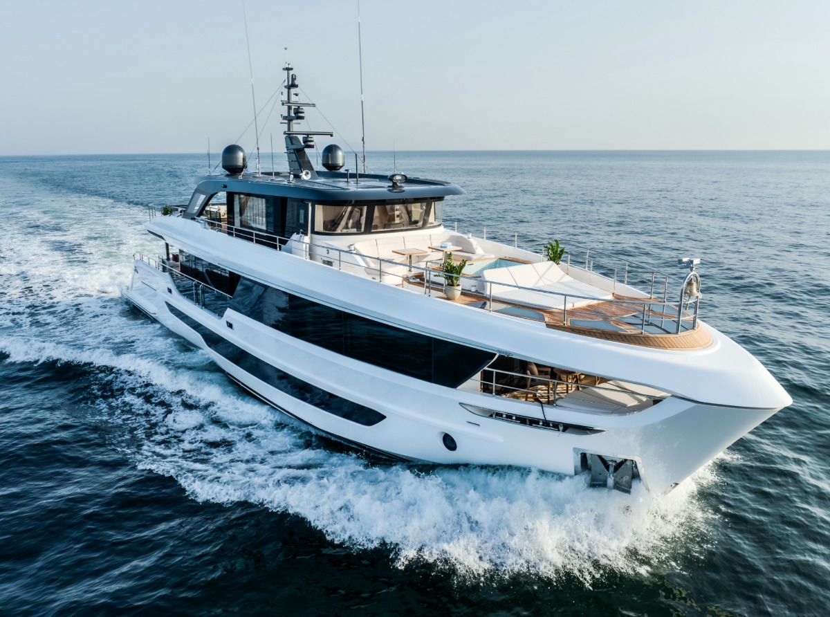 The Majesty 100 Terrace is a masterpiece of modern design and craftsmanship, building on its legacy as one of the most celebrated models in Majesty Yachts’ history. With its sleek silhouette and bold presence, this superyacht is not just another luxury vessel—it’s a statement of refined elegance and innovative design. The Majesty 100 Terrace combines effortless grace with cutting-edge technology, delivering a sleek, bold silhouette and 199GT of pure elegance.
