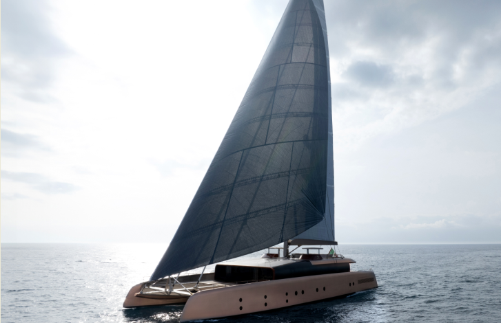 The catamaran is certified with a “green” class notation and is equipped with catalytic filters to reduce emissions and particulates from exhaust gases. Additionally, all maneuvers in ports and protected areas will be carried out in full electric mode. Thanks to its powerful, fully automated sailing plan, which can be managed by a single person, the catamaran can sail at 10 knots even in very light wind conditions.