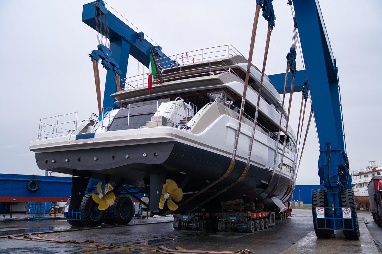 The design and construction of the boat are by the well-known english studio Harrison Eidsgaard, luxury yacht & aircraft design. The motor is made up of 2 Caterpillar 1600 HP each. With this second unit the entry in the superyacht sector is consolidated, opening new growth prospects for the Italian shipyard of La Spezia.
