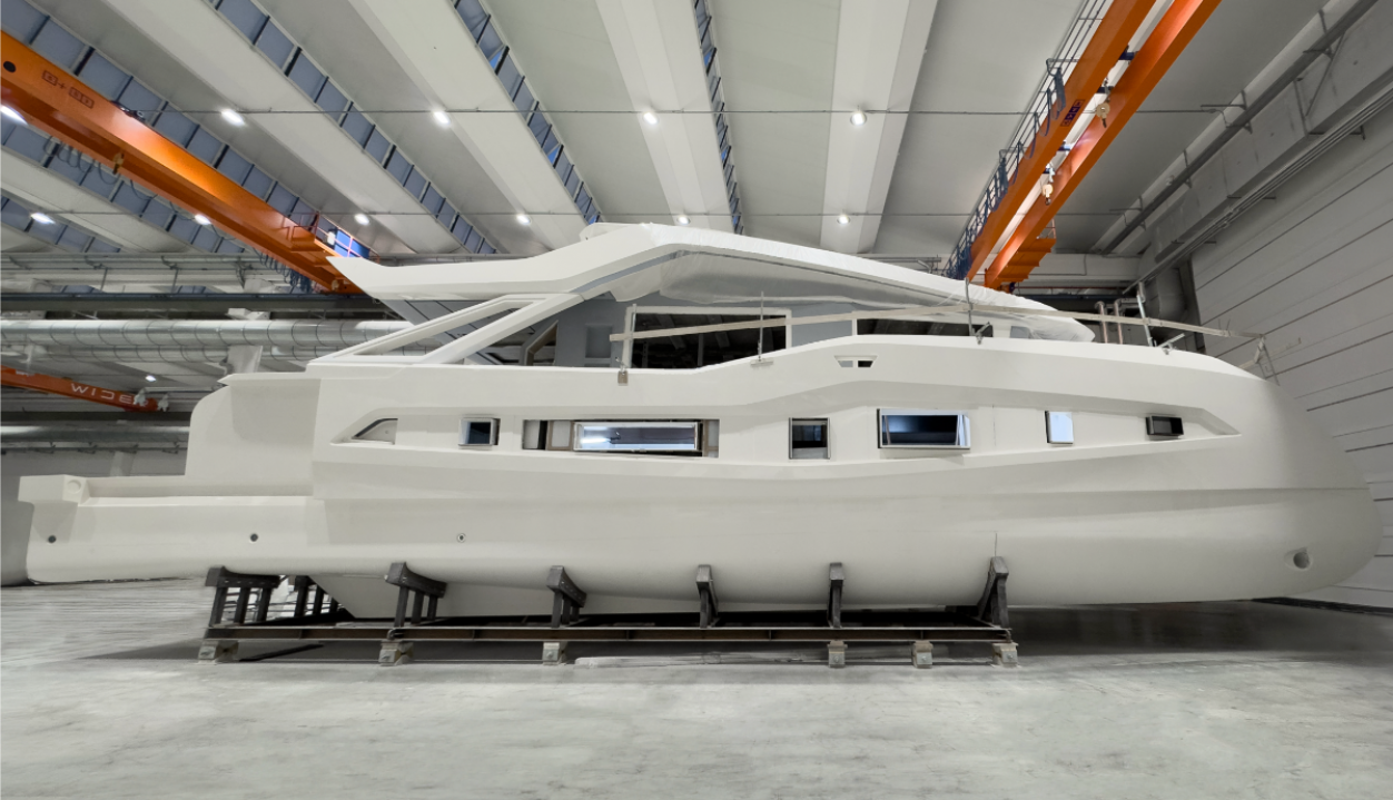 The Wider shipyard continues to push the boundaries of yacht design with the all-new WiderCat 76 under construction at its state-of-the-art Wider Vision Hub in Fano, Italy.
