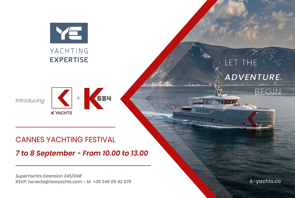 K-584 will attend the Cannes Yachting Festival from Tuesday, September 7th to Sunday, September 12th, positioned at stand SYE 245, yacht SYE 048 on the Superyacht extension.